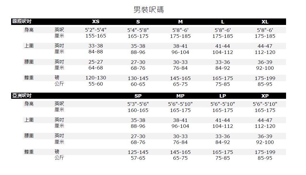 To determine your correct size and ensure the desired fit, please use the Size Guide shown below.
